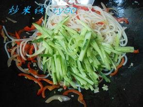 3. 将蔬菜和肉类切成细丝,与米线一起炒制。
